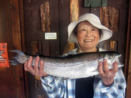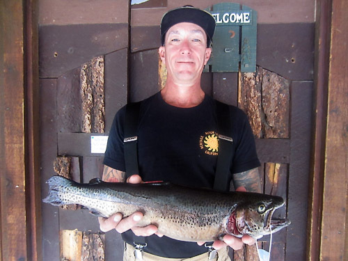 FLY RODS: Only saw one hatch this week, but then I spend way too much time in the Lodge.. Try Light dun (BWO blue wing olive) dries toward a dark grey. Dirty Doc olive Twin Lake special with prince nymph (always) and Virginia lakes special (olive Matuka with red throat). Try midges they always work along with scuds. Regardless, the fishing has been great! No, I apologize - it's sensational!