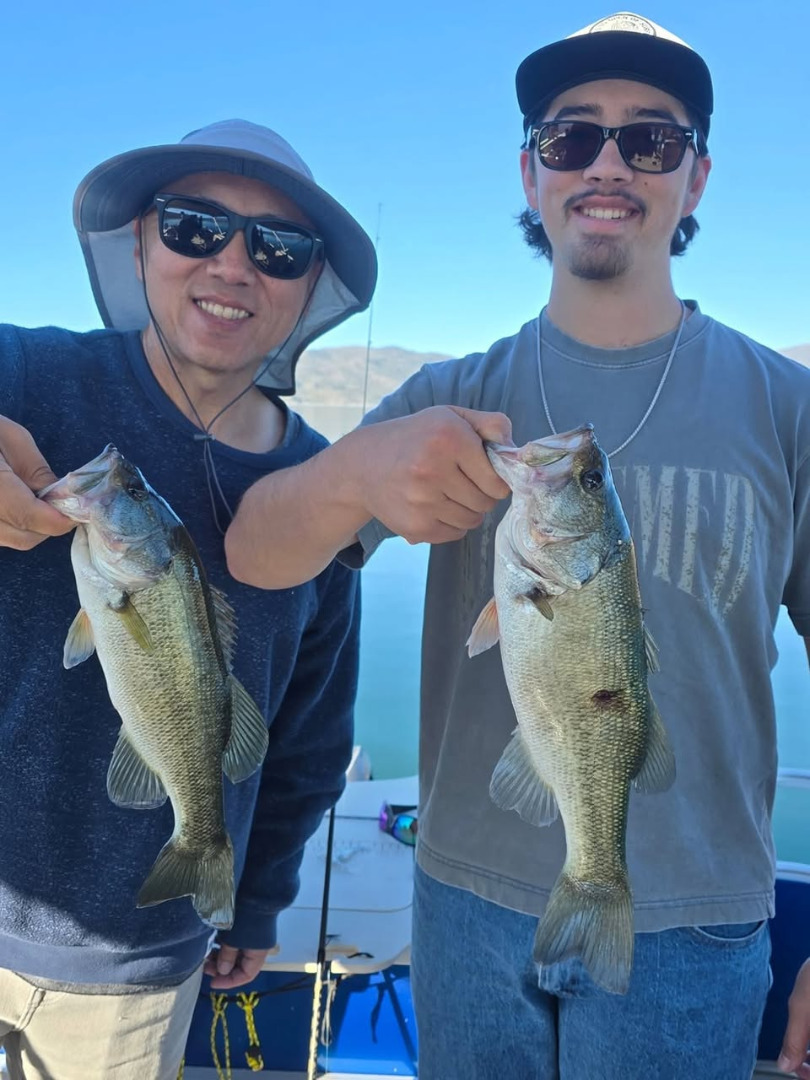 Lake Casitas Bass Fishing Guide Report Southern California 10/21/2025 - Super guide Steve Morris came down from Lake Cachuma to Lake Casitas to do a pontoon boat trip yesterday with these guys, their first time being here, and it turned out to be an awesome day … catching an 8.26 lb largemouth bass. To top the day off was a wide-open bite, catching over thirty bass on a variety of baits. If you're interested in getting tin on the fishing at Lake Casitas on our pontoon boat, all you have to do is call or text Rich Tauber Fishing, at 818-439-1154. or you could go to our website at www.richtauberfishing.com and click the book online button and purchase the day that works best for you.