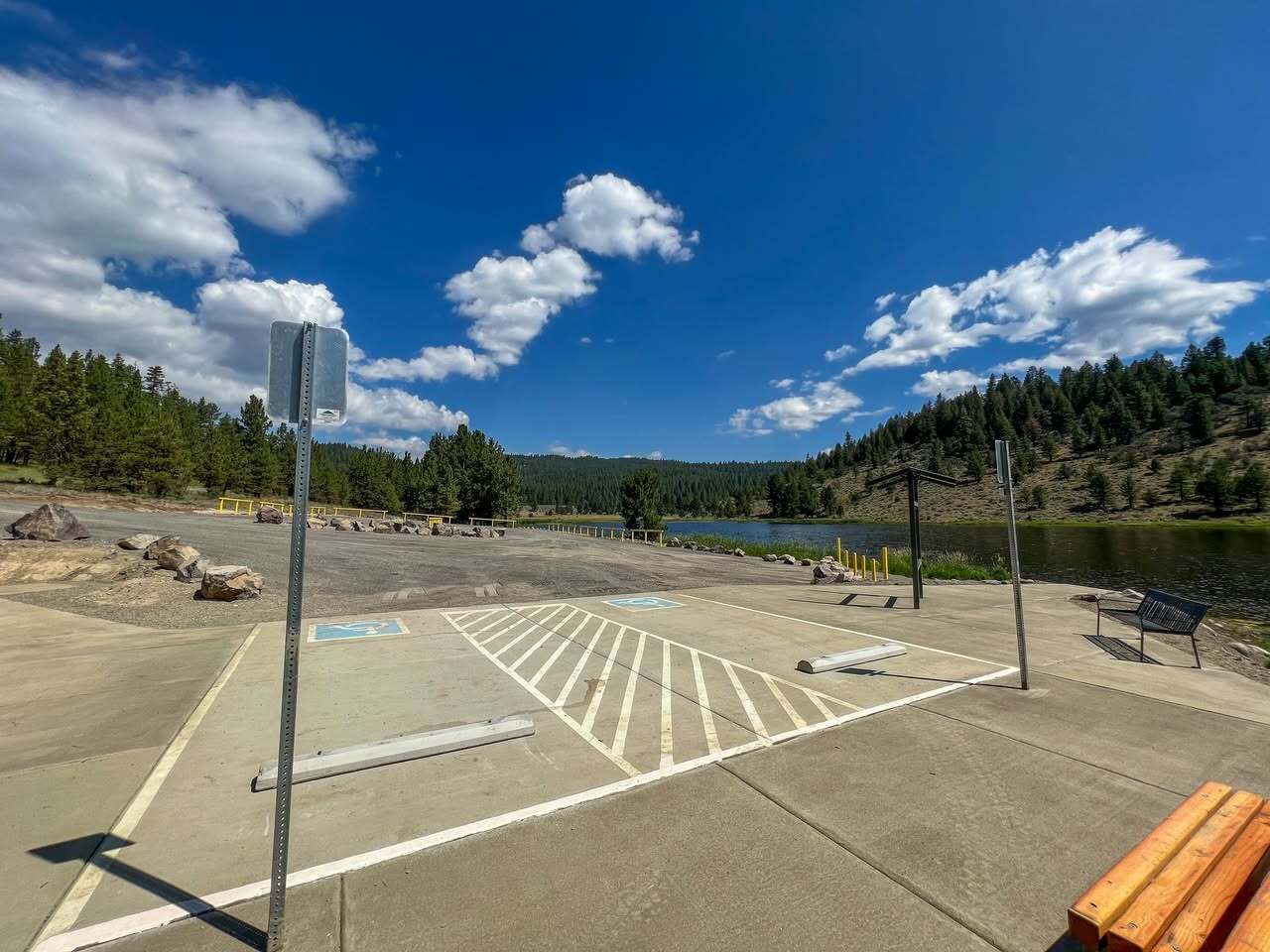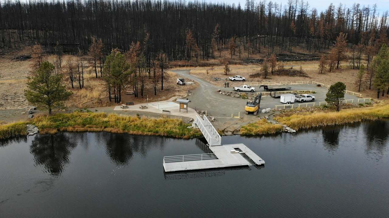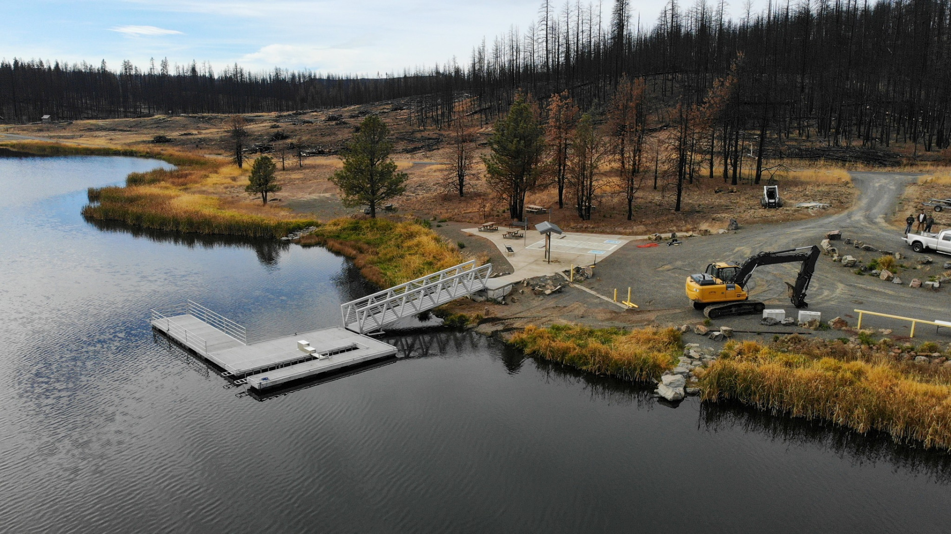 A new fishing dock and ADA-compliant parking area at Yellowjacket Lake near Burns, Oregon