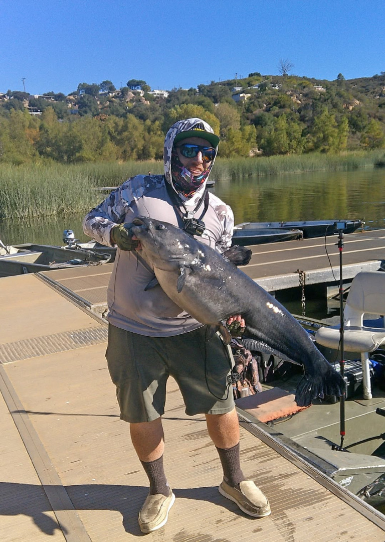 He landed this monster from the Senior Shore using a swimbait and released the catfish back into the water.